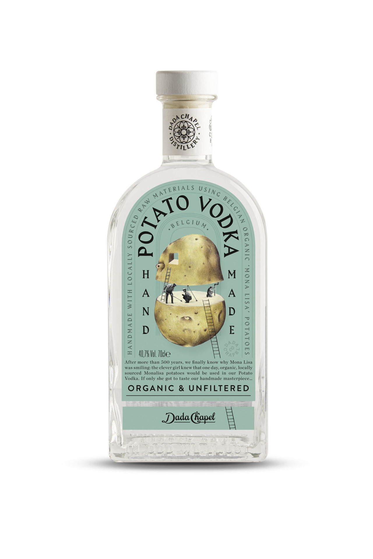 De DADA Chapel Potato Vodka is een ambachtelijke vodka uit Gent, België, gestookt in de historische Dada Chapel stokerij. Dit product is de belichaming van de 'Dada' filosofie: tegendraads, vol karakter en ongefilterd. In tegenstelling tot commerciële vodka's die eindeloos gefilterd worden tot ze volledig neutraal zijn, behoudt deze spirit bewust de complexe smaak en textuur van de grondstof. De vodka is gemaakt van lokaal geteelde, biologische 'Mona Lisa' aardappelen.
