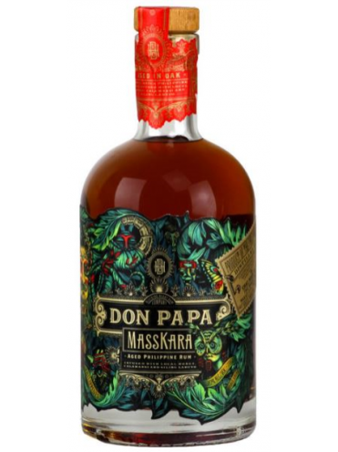 Don papa Masskara is geïnspireerd op het vibrerende jaarlijkse "Festival of Smiles" op het Filipijnse eiland Negros, beter bekend als het "Masskara Festival". Dit exuberante festival staat ieder jaar symbool voor een visuele fanfare van kleurrijke dansparades. Don Papa Masskara is een ode aan zowel het festival als de wonderlijke kwaliteit en persoonlijkheid van het lokaal gecultiveerde suikerriet, de basis van Don Papa Rum. Deze op Amerikaanse eiken vaten gerijpte rum wordt meesterlijk geblend met een speciaal gedistilleerde infusie van kalamasi citrusvruchten uit de Filipijnen en de wilde labuyo chilipeper. Het resultaat is een warme, tintelende rum die wordt afgetopt met tropische honing om een laatste laag van zoete complexiteit toe te voegen.