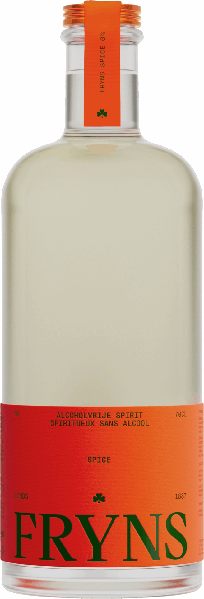 Fryns Spice 0% is een alcoholvrije spirit die op zichzelf staat — geen kopie van een bestaande alcoholische drank, maar een unieke creatie met een pittige, gelaagde smaakbeleving. Ontwikkeld met vijf generaties vakmanschap en moderne distillatietechnieken, biedt deze Belgische topper een verfijnde blend van citrus, gember en rode peper.