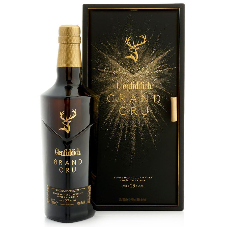 De Glenfiddich 23 Year Old Grand Cru is een uitzonderlijke single malt whisky die de perfecte balans vindt tussen Schotse traditie en Franse verfijning. Deze whisky is een waar meesterwerk, gerijpt gedurende 23 jaar en vervolgens afgewerkt in Franse cuvée-wijnvaten.