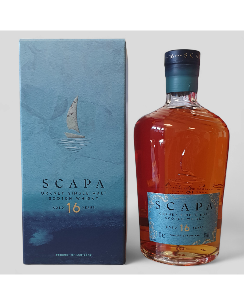 Scapa 16 Years is een Schotse single malt whisky die afkomstig is van het eiland Orkney. Deze whisky staat bekend om zijn complexe smakenprofiel en zijn rijke geschiedenis. Met een alcoholpercentage van 48% en een rijping van 16 jaar op eikenhouten vaten biedt deze whisky een unieke en onvergetelijke ervaring.